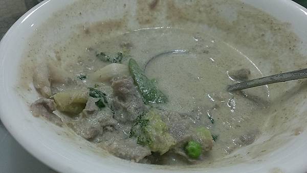 綠咖哩豬肉片: 不錯吃, 但不會很辣, 這是已經吃一半了~~ 雖然不錯吃, 但並不是我吃過最好吃的綠咖哩 , 可以口味還可以接受