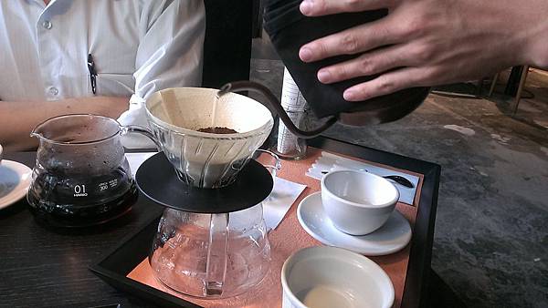 比較可惜今天因為早上喝了一杯咖啡 , 所以來這裡沒有點招牌, 可是看到手沖的過程還挺有趣的, 也算是開了眼界囉~