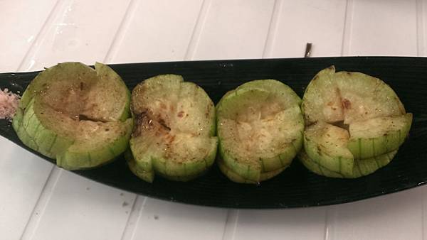 第二盤是烤絲瓜, 烤的不錯,不會太鹹, 但其實私心認為絲瓜應該可以不用塗醬,如果只吃原味應該更可以吃到它的絲瓜甜~~